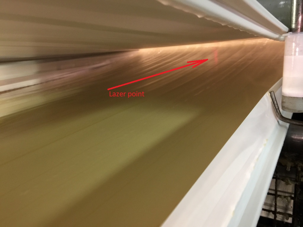 The laser’s function is to measure the distance between the foam deposition and the wave. Once this distance is set by the operator, the laser takes over and manages the speed of the line to maintain a constant wave position.